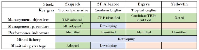 Table 1. Summary of progress towards implementing the harvest strategy elements for key WCPFC stocks and fisheries.