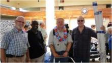 Professor Glenn Hurry took up his appointment as Executive Director of the Western and Central Pacific Fisheries Commission on 26 September 2010 and arrived at the location of the Commission’s headquarters, Pohnpei, Federated States of Micronesia on 27 September after a long set of flights from Canberra, Australia. Professor Hurry will immediately be involved with the Sixth Annual Session of the Commission’s Technical and Compliance Committee Meeting which is being held in Pohnpei from 30 September to 05 October 2010. After his long flight Professor Hurry was greeted by Dr. SungKwon Soh, the Interim Executive Director, the Commission’s Legal Advisor, Dr Martin Tsamenyi and WCPFC Secretariat staff who gave a warm welcome. Pictured left to right are Peter Flewwelling, Compliance Manager; Dr. Martin Tsamenyi, Legal Advisor; Professor Glenn Hurry, Executive Director; Ken Smithson, Finance and Administration Officer. Also present were two impressive but disguised fishing rods that claimed to be part of the Executive Director’s party. Professor Hurry was appointed following the departure of Andrew Wright in February.