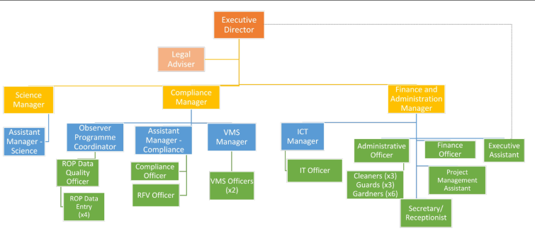 Work delivery: The work of the Secretariat is primarily delivered through three core functions: the Science Programme, Compliance and MCS Programme and Finance and Administration. The Secretariat also supports the work of the Northern Committee in consultation with its Member countries. These functions are overseen by the Executive Director and supported by ICT services of the Secretariat.